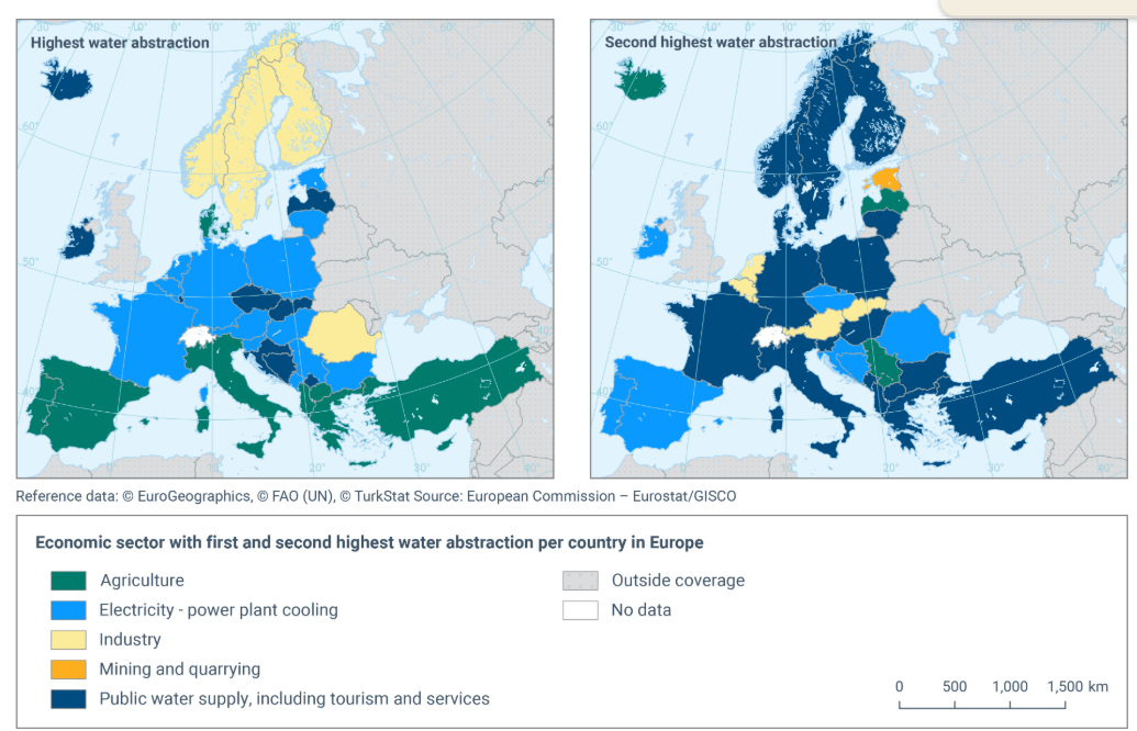Dal 2010, il prelievo di acqua in Europa è aumentato in quasi tutti i settori, ad eccezione del raffreddamento elettrico, evidenziando la necessità di migliorare ulteriormente l’efficienza idrica.