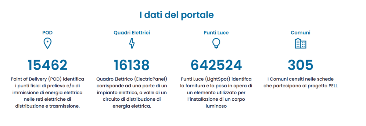 La piattaforma PELL mira a costituire un database informativo di riferimento per le principali infrastrutture energivore, tra cui l’illuminazione pubblica. L’obiettivo è far sì che la piattaforma stessa diventi uno strumento di supporto nazionale per la conoscenza, valutazione e pianificazione di interventi innovativi, oltre che per la quantificazione del loro costo e dei tempi di realizzazione.