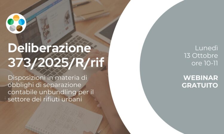 Lunedì 13 ottobre dalle ore 10 alle 11 si terrà il webinar “Deliberazione 373/2025/R/rif – Disposizioni in materia di obblighi di separazione contabile (unbundling) per il settore dei rifiuti urbani” a cura di Fondazione Operate.